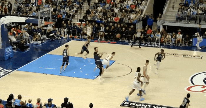 第二節(jié)比賽,飛奧斧劈奧拉迪波反擊快下,擊快接單高高躍起空接單臂戰(zhàn)斧劈扣。下高