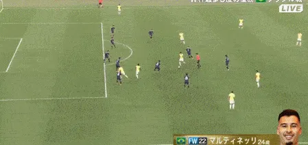 帕奎塔挑傳禁區(qū),馬丁內(nèi)利左路爆射破門,巴西2