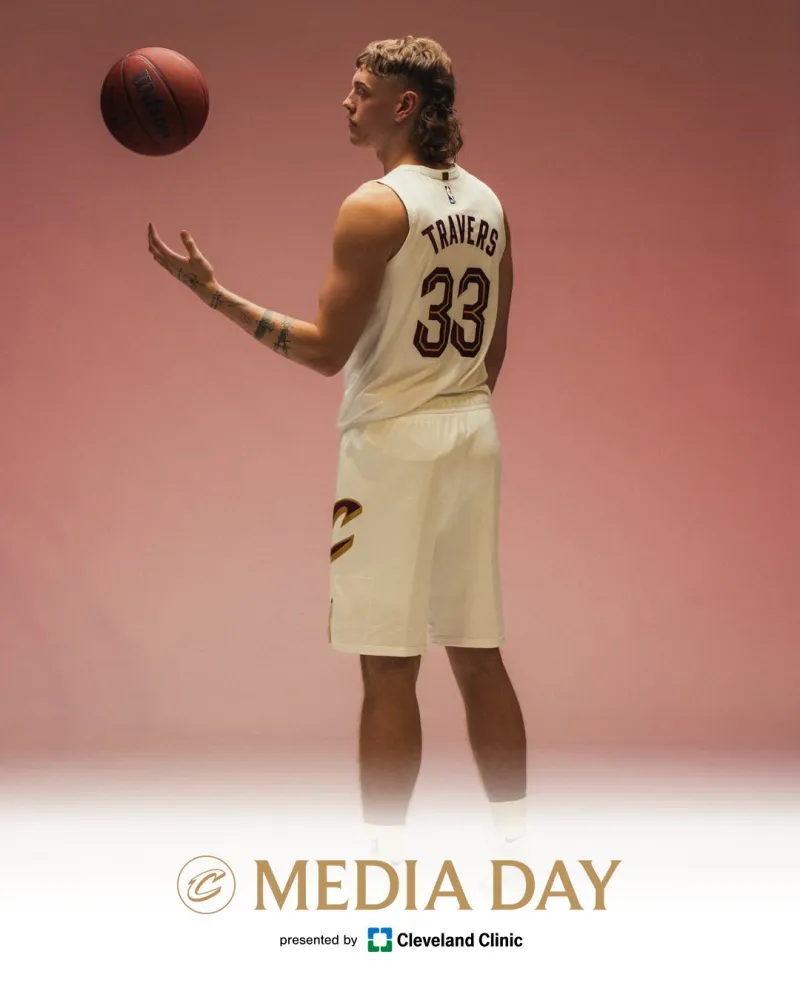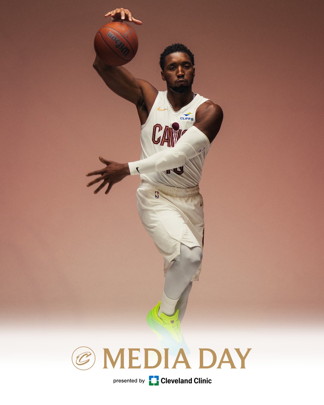 虎撲10月01日訊 今日,騎士社媒曬出球員在媒體日的媒曬媒體米切定妝照片組圖,多諾萬-米切爾等球員出鏡。定妝