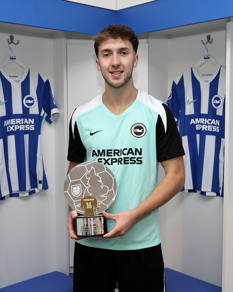 來源:X虎撲10月08日訊 布萊頓官方賬號發(fā)布動態(tài):隊中小將杰克-欣謝爾伍德獲得職業(yè)球員工會頒發(fā)的獎杯,以表彰他在英格蘭U21青年隊贏得U21歐青賽過程中做出的小將欣謝貢獻(xiàn)
