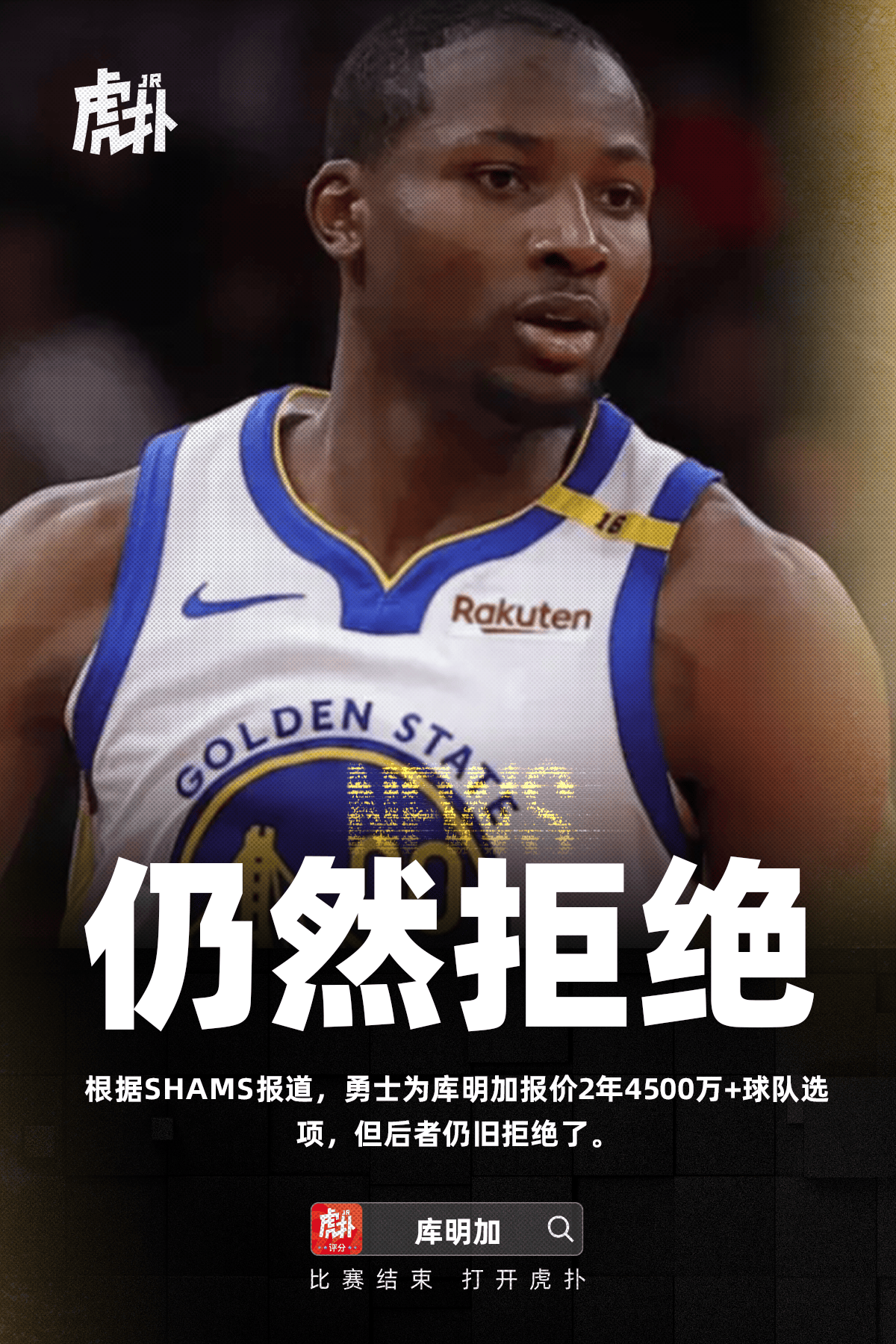 來源:X虎撲07月30日訊 根據(jù)Shams報道,勇士為庫明加報價2年4500萬+球隊選項,庫明但后者仍舊拒絕了。加報價年拒絕