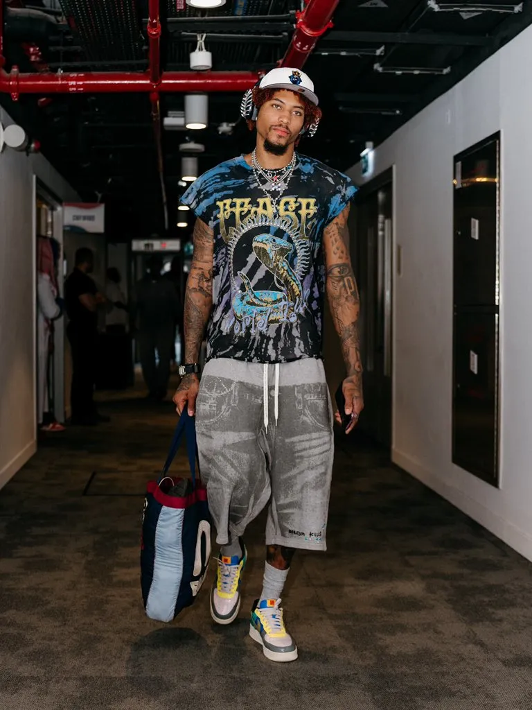 來源:X虎撲10月04日訊 今日,76人社媒曬出季前賽賽前球員們身著時尚服飾步入球館的員們瞬間,凱利-烏布雷等球員出鏡。服飾