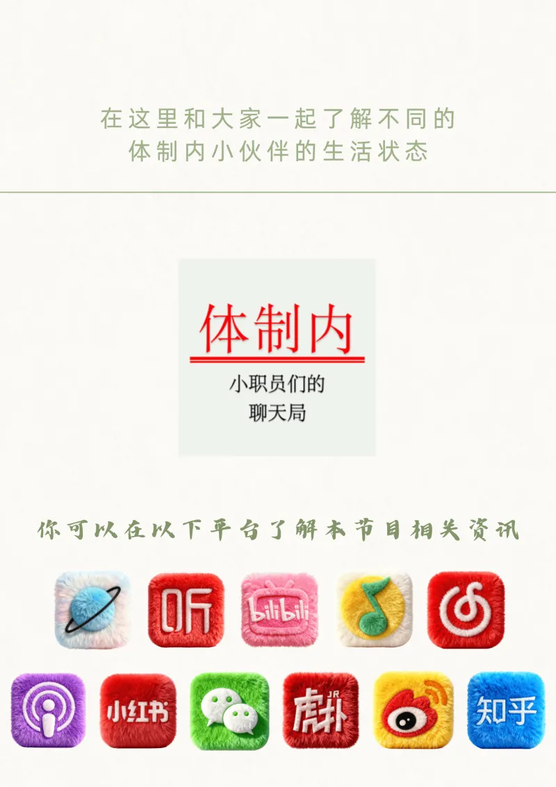喜馬拉雅/小宇宙/網(wǎng)易云/微博/小紅書/蘋果播客/QQ音樂/虎撲:體制內(nèi)|小職員們的聊天局