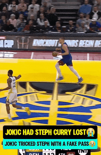 今日比賽中一個回合,流言里晃約基奇背身單打庫里隨后做出傳球假動作,板球把庫直接把庫里晃得暈頭轉(zhuǎn)向并中投命中。呢美