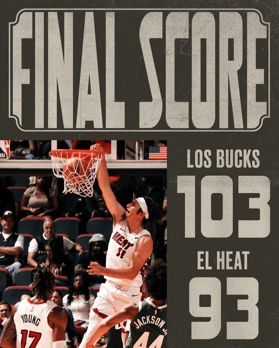 熱火官方更新社媒,入鏡分享賽果海報(bào)。流言鹿賽