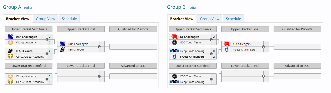 由于昨日結(jié)束的比賽中AB兩組的小組第一已經(jīng)確定由LCK次級聯(lián)賽隊伍鎖定,因此T1二隊擊敗BLG二隊后LCK次級隊伍已經(jīng)包攬了三個小組第一,鎖定了季后賽四個席位中的三個。