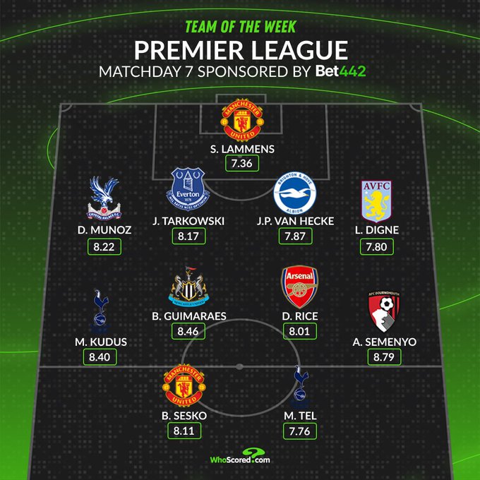 來源:X虎撲10月06日訊 Whoscored今日發(fā)布英超第7輪最佳陣容盤點,賴斯領銜,板W本周謝什科、英超拉門斯入選。最佳陣容