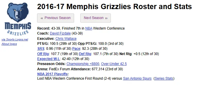 季后賽首輪,灰熊被西部第二的馬刺所淘汰。