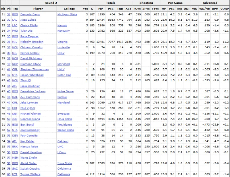 (二)如果不放棄且努力的話,王哲林有一定可能性在NBA打三個賽季以上。(30名二輪秀11名打了三個賽季以上)