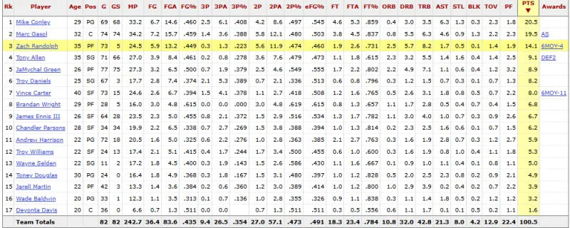 灰熊陣容——邁克-康利、托尼-阿倫、馬克-加索爾、扎克-蘭多夫領(lǐng)銜。