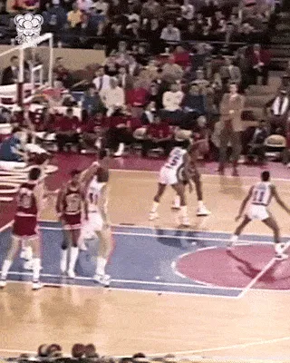 “邁克爾-喬丹拉桿跳投躲過(guò)活塞的停媒體曬跳投三人防守,并把球投進(jìn)!喬丹球投”Fastbreak Hoops附文道。人防