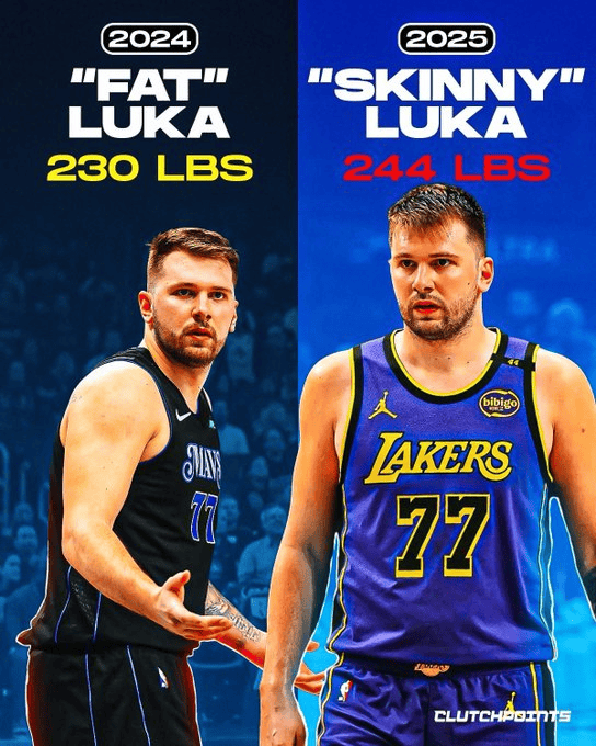 但湖人官方名單剛公布...盧卡體重顯示為244磅,比上賽季效力獨行俠時竟重了14磅??