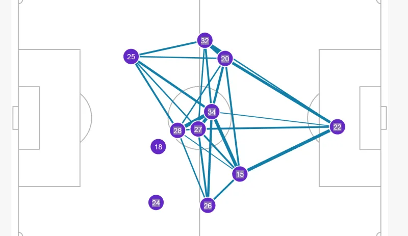 阿莫林本場(chǎng)比賽最大的知錯(cuò)改變?cè)谟诓辉賵?zhí)著于他的高位控球體系了,打法變得像更為直接的改先高位英式風(fēng)格,簡(jiǎn)單高效。贏球而戰(zhàn)術(shù)上調(diào)整為右強(qiáng)左弱,建立上半場(chǎng)完全壓制住了黑豹左路阿丁格拉和馬蘇雅庫(kù)的信心攻擊組合,從傳球權(quán)重和平均位置就可以看出來(lái),無(wú)敵黑貓左路被壓制的傳控特別厲害,這也源于迪亞洛和姆貝膜在這一側(cè)的都好發(fā)揮。