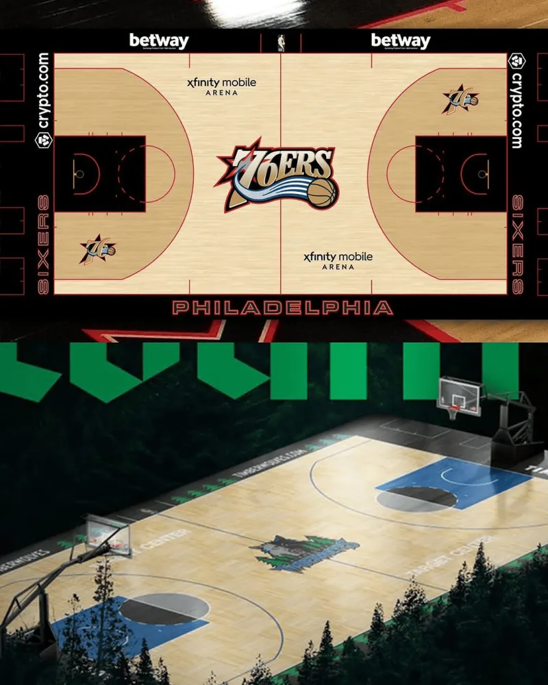 其中,只球76人復(fù)古球衣為阿倫-艾弗森時期的復(fù)古p復(fù)經(jīng)典球衣;森林狼復(fù)古球衣為凱文-加內(nèi)特時期的黑森林球衣。與之配套使用的球衣復(fù)古涂裝地板也同時亮相。
