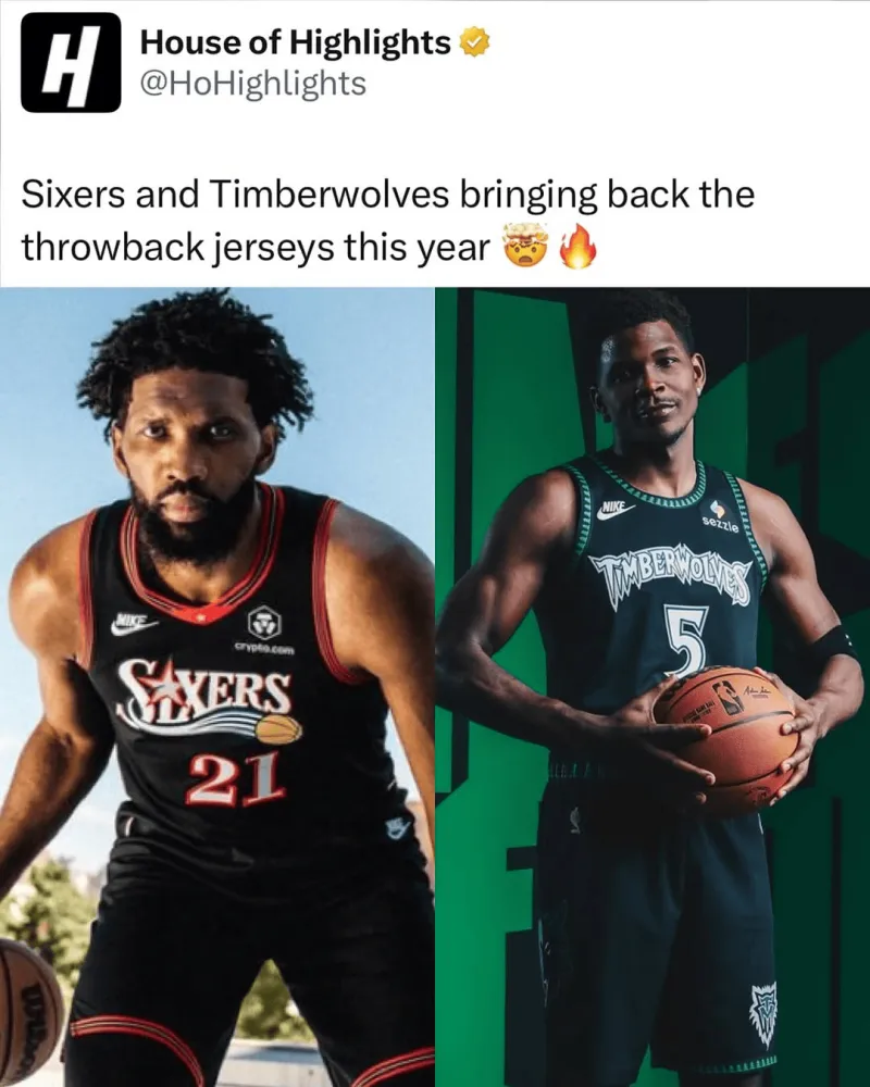 虎撲09月25日訊 今日,76人隊和森林狼隊球員均穿著各自球隊全新復(fù)古版球衣拍攝新賽季定妝照。和森