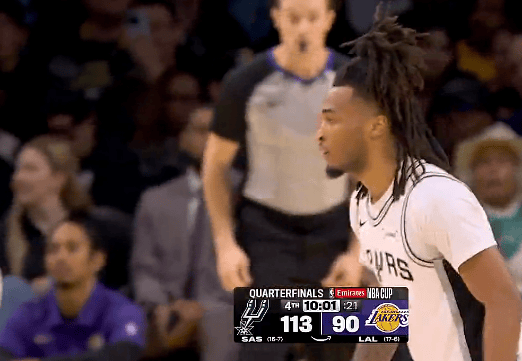 NBA杯四分之一決賽,湖人對(duì)陣馬刺的步分比賽正在進(jìn)行中。
