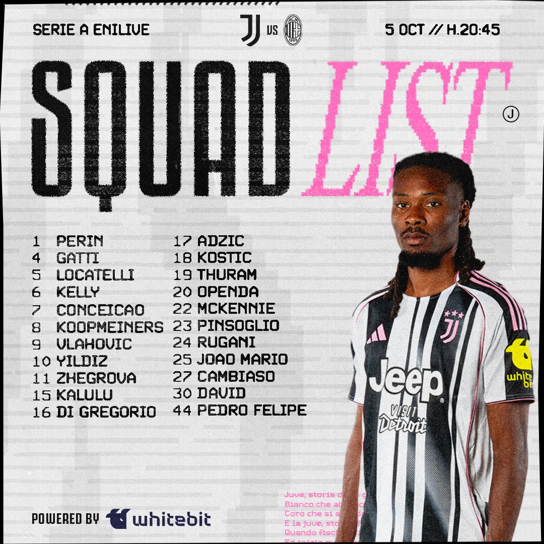 來源:X虎撲10月05日訊 尤文圖斯官方公布了今晚對(duì)陣AC米蘭的比賽大名單。