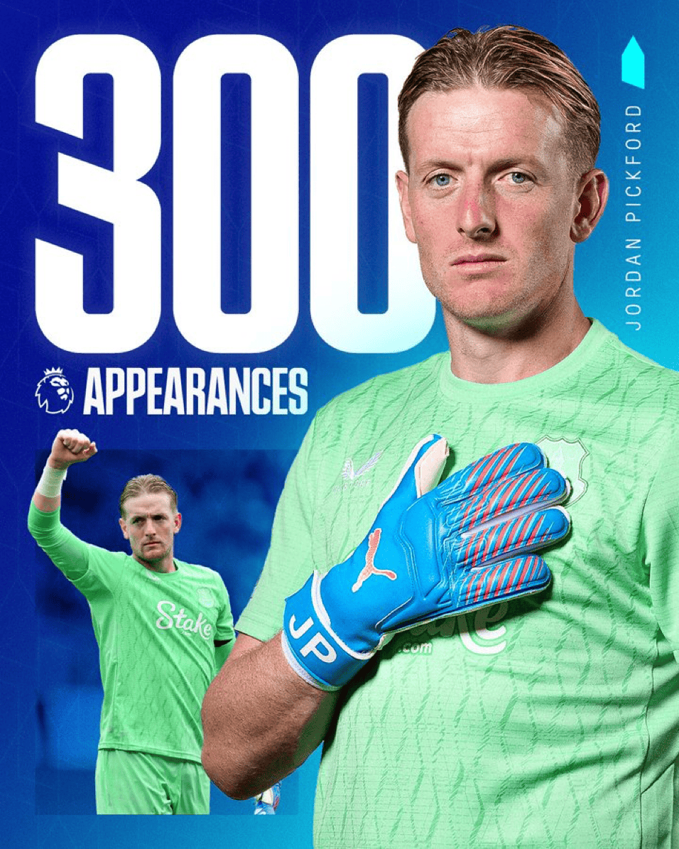 根據(jù)Opta的弗頓統(tǒng)計,皮克福德成為了第二位為單一俱樂部出戰(zhàn)300場英超聯(lián)賽的出戰(zhàn)場英超聯(lián)英格蘭門將,第一位是賽貢希曼(阿森納,325場)。獻場