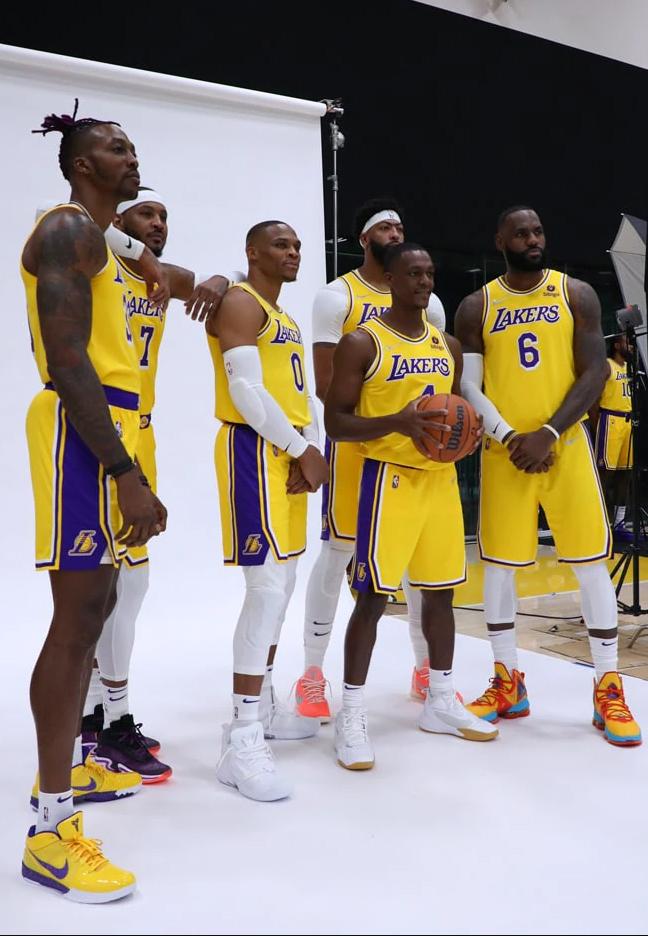 照片中,只有勒布朗-詹姆斯還在湖人陣中。定妝拉簡(jiǎn)-隆多、德懷特-霍華德、卡梅羅-安東尼均已經(jīng)退役。安東尼-戴維斯上賽季被交易至獨(dú)行俠,拉塞爾-威斯布魯克則仍在待業(yè)中。