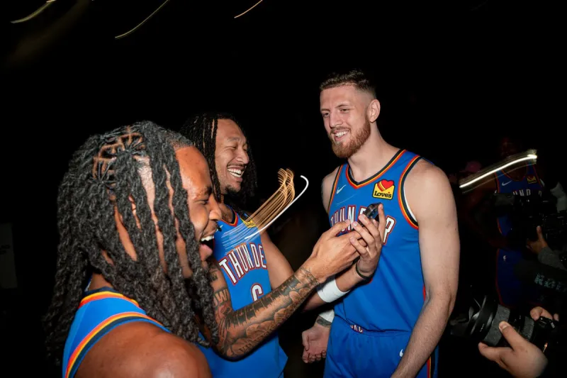 虎撲10月01日訊 今日,雷霆更新社交媒體,霆官曬出球員定妝照拍攝現(xiàn)場花絮。媒曬