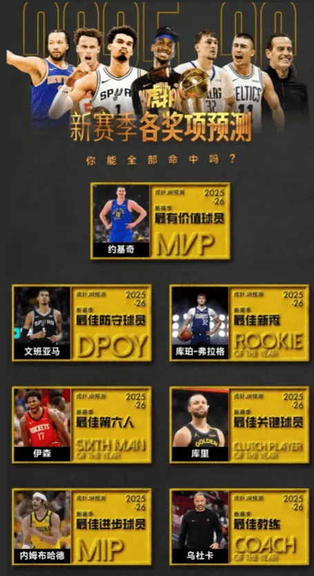 賽季即將開幕之際,活動我們再推出一檔全新活動——新賽季獎項預(yù)測活動,開啟誠邀JRs選出你們心中的新賽現(xiàn)已新賽新賽季常規(guī)賽各獎項的人選。