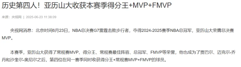 幾年前,有誰會想到亞歷山大會僅用一個賽季就集齊MVP、得分王、冠軍、FMVP四大榮譽呢?