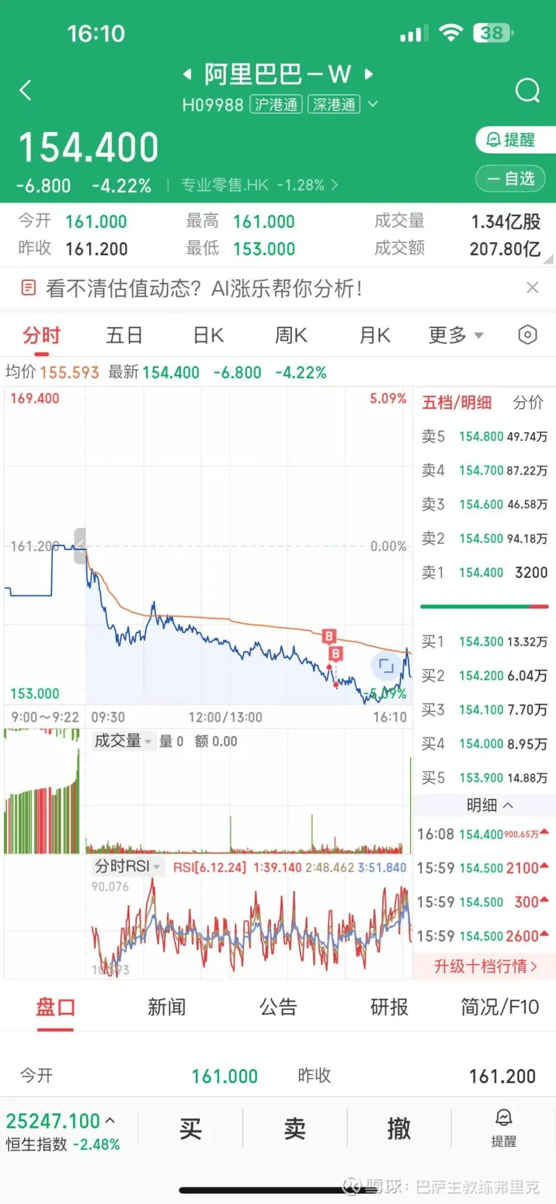 3. 阿里巴巴:154.7和154分批加倉(cāng);