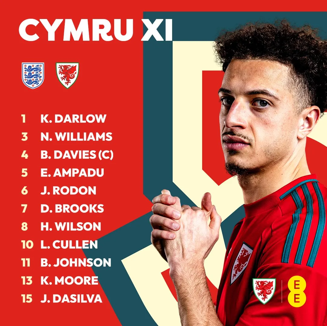 威爾士首發(fā):1-達(dá)洛、3-威廉斯、4-戴維斯、5-艾姆帕杜、6-羅頓、7-布魯克斯、8-威爾遜、10-卡倫、11-約翰遜、13-穆爾、15-達(dá)席爾瓦