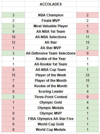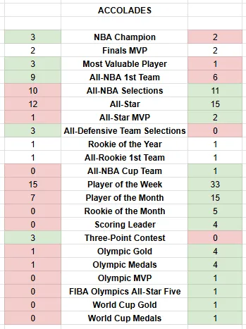球員B生涯2次獲得總冠軍、2次總決賽MVP、1次常規(guī)賽MVP、6次入選最佳陣容一陣、15次入選全明星。