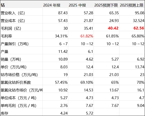 鈷全年毛利潤預(yù)測:40.42~62.56億