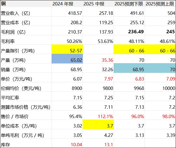 原因是之前說的中報有一個內(nèi)部抵銷導(dǎo)致了37億的虧損,這個虧損可能是關(guān)聯(lián)交易導(dǎo)致的,所以表格里測算數(shù)據(jù)在25年中報出現(xiàn)異常以后,在預(yù)測全年數(shù)據(jù)時候調(diào)平,我這里在銅板塊調(diào)平了以后。后續(xù)的板塊就不用在調(diào)整了。