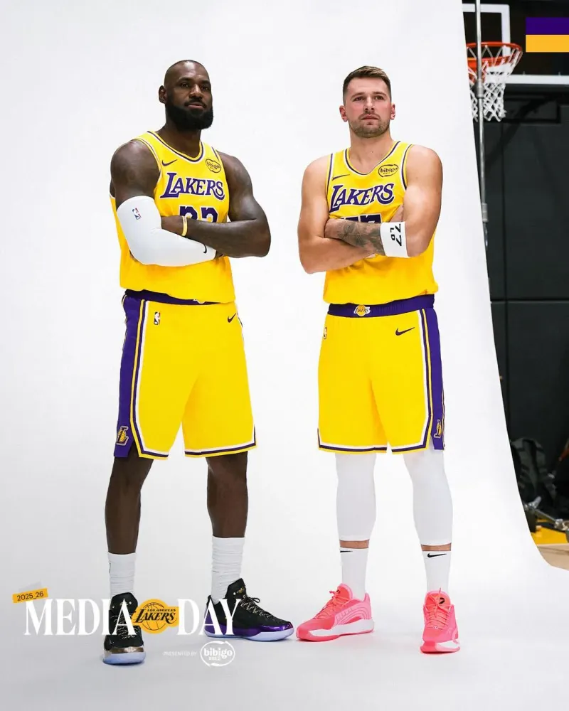 虎撲09月30日訊 湖人官方更新X,曬出一張湖人球員勒布朗-詹姆斯和盧卡-東契奇的合湖合影合影與球迷分享。