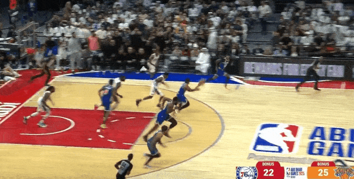 虎撲10月05日訊 NBA季前賽,76人對陣尼克斯的森反雙手比賽正在進行中。
