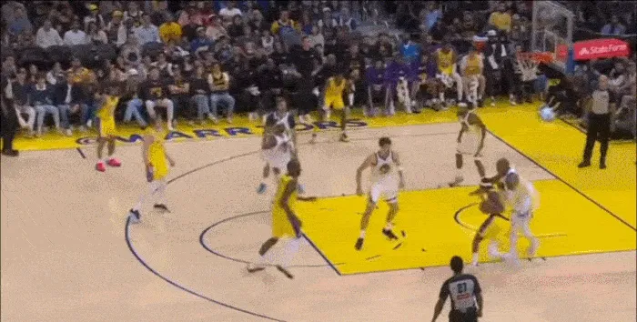 這是一個連續(xù)的回合(體現(xiàn)了防守和傳球)先是來到三分線夾擊布朗尼 搶斷完后意識到位 里面甩到前場快攻