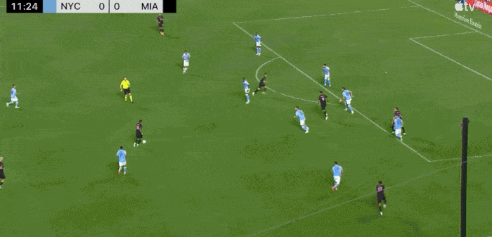 梅西遠(yuǎn)距離發(fā)力射門,折射后稍稍偏出右門柱