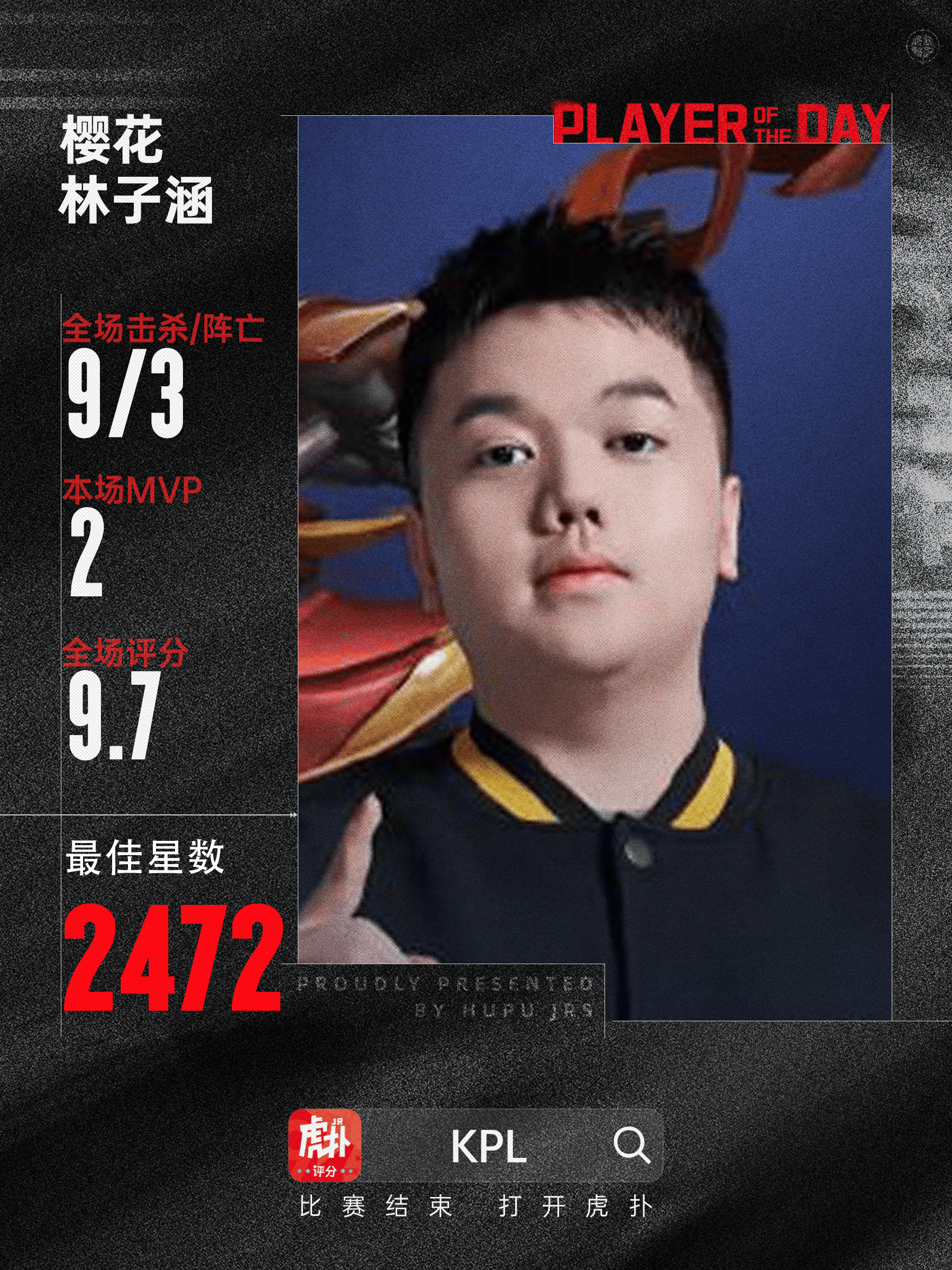 最終櫻花選手以9.9的花分評分,總星數(shù)2472(排除一星)斬獲昨日最佳選手!板銳