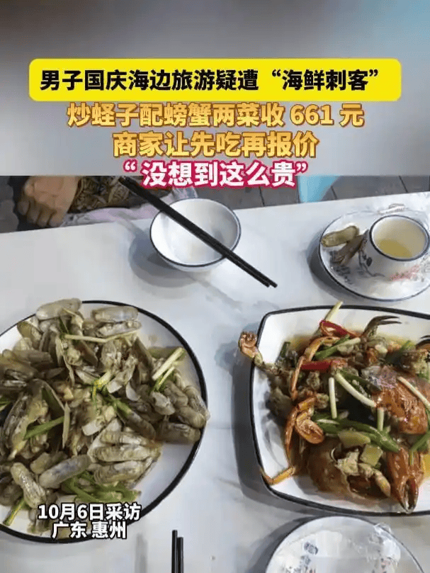 來源:微博虎撲10月07日訊 廣東惠州。一則有關(guān)#男子旅游點(diǎn)炒蟶子和螃蟹兩個(gè)菜661元# 登上熱搜,引關(guān)注。隨即,記者致電餐廳老板得知,顧客點(diǎn)菜時(shí)已明確告知價(jià)格與斤數(shù),實(shí)際收費(fèi)比標(biāo)價(jià)還低不少。膏蟹標(biāo)價(jià)288元/斤,但進(jìn)貨價(jià)約160元/斤,加上人工、租金等經(jīng)營(yíng)成本,實(shí)際售價(jià)為188元/斤。顧客所點(diǎn)的螃蟹重2.4斤,蟶子3斤(單價(jià)68元/斤),加上2人茶位費(fèi)共6元,總計(jì)661元。