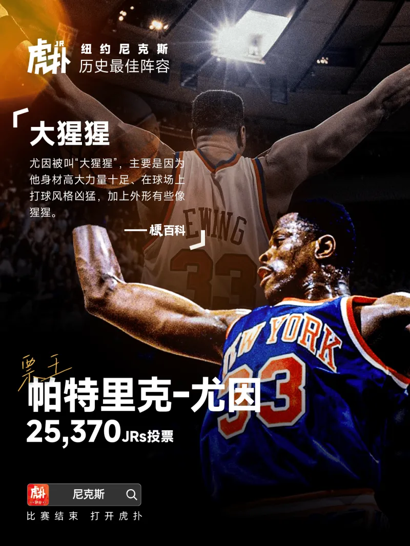 本期評選的球隊是——紐約尼克斯隊,經(jīng)過評選,JRs選出的尼克斯隊史最佳陣容已正式出爐,其中帕特里克-尤因以25370票當(dāng)選隊史票王!