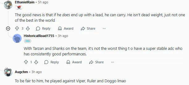 隊(duì)里有Tarzan和Shanks在,擁有一個(gè)表現(xiàn)穩(wěn)定、持續(xù)性發(fā)揮良好的ADC并不是最壞的情況。