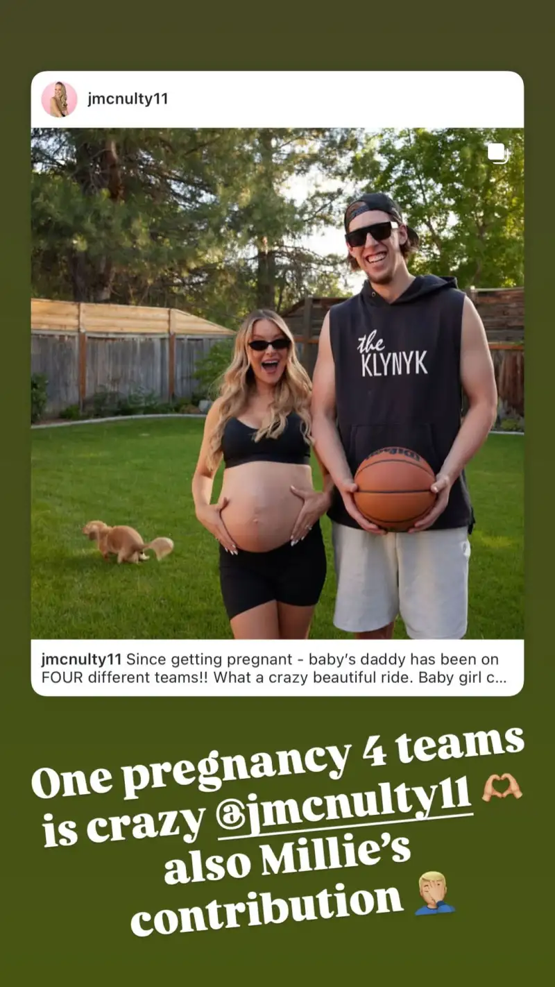 “至從懷孕后,孩子的爸爸已經(jīng)經(jīng)歷了4個(gè)不同的球隊(duì),多么瘋狂而又美妙的旅程。”