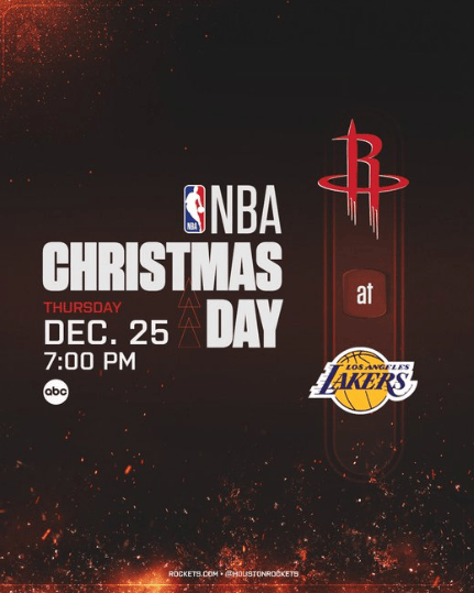 根據(jù)官方公布的圣誕賽程,在今年的大戰(zhàn)美國時間12月25日下午7點,火箭將客場對陣湖人?;鸺?/p>場對來源:X