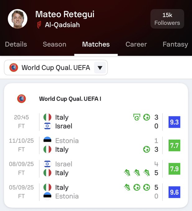 Sofascore數(shù)據(jù)統(tǒng)計,首位雷特吉成為自因西涅在2020年11月至2021年3月連續(xù)四場參與進球以來,續(xù)場首位為意大利國家隊連續(xù)四場參與進球的參進球員。