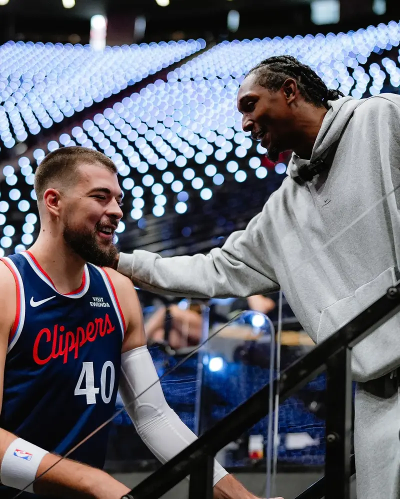 “看看誰(shuí)來(lái)啦???????!船官出現(xiàn)場(chǎng)照”快船官方附文道。流言路威亮相