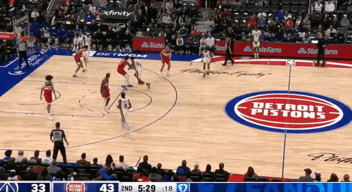 NBA季前賽,奇才對陣活塞的單防杜倫大帽比賽正在進行中。