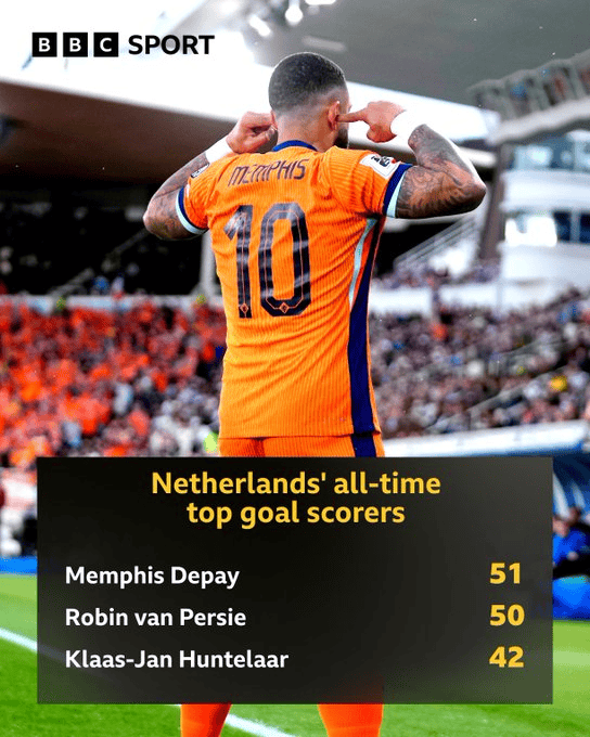 值得一提的是,荷蘭隊(duì)歷史射手榜上,前十名中僅有德佩一人為現(xiàn)役球員。
