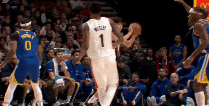 NBA季前賽,開拓者對陣勇士的角接比賽正在進行中。