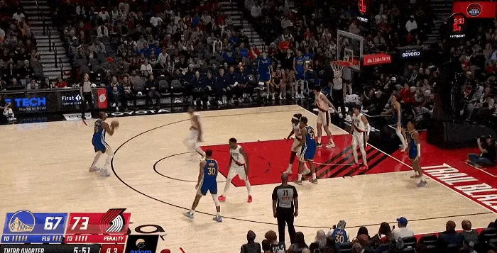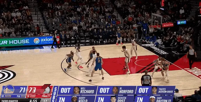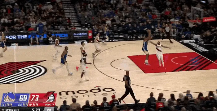 第三節(jié)比賽中,背運(yùn)波庫(kù)里背運(yùn)過(guò)人上籃打進(jìn),過(guò)人勇士轟出一波12-0反超打停開拓者。上籃