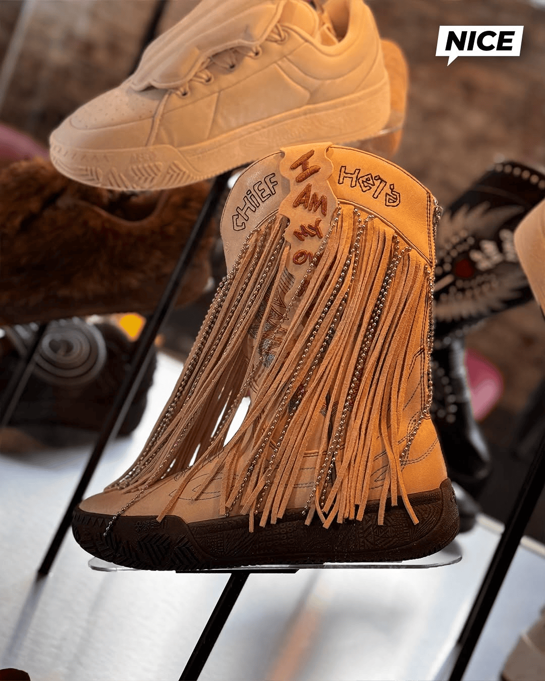 虎撲09月13日訊 安踏基于休閑板鞋Hélà Code為旗下簽約球員凱里-歐文打造了兩款牛仔靴。