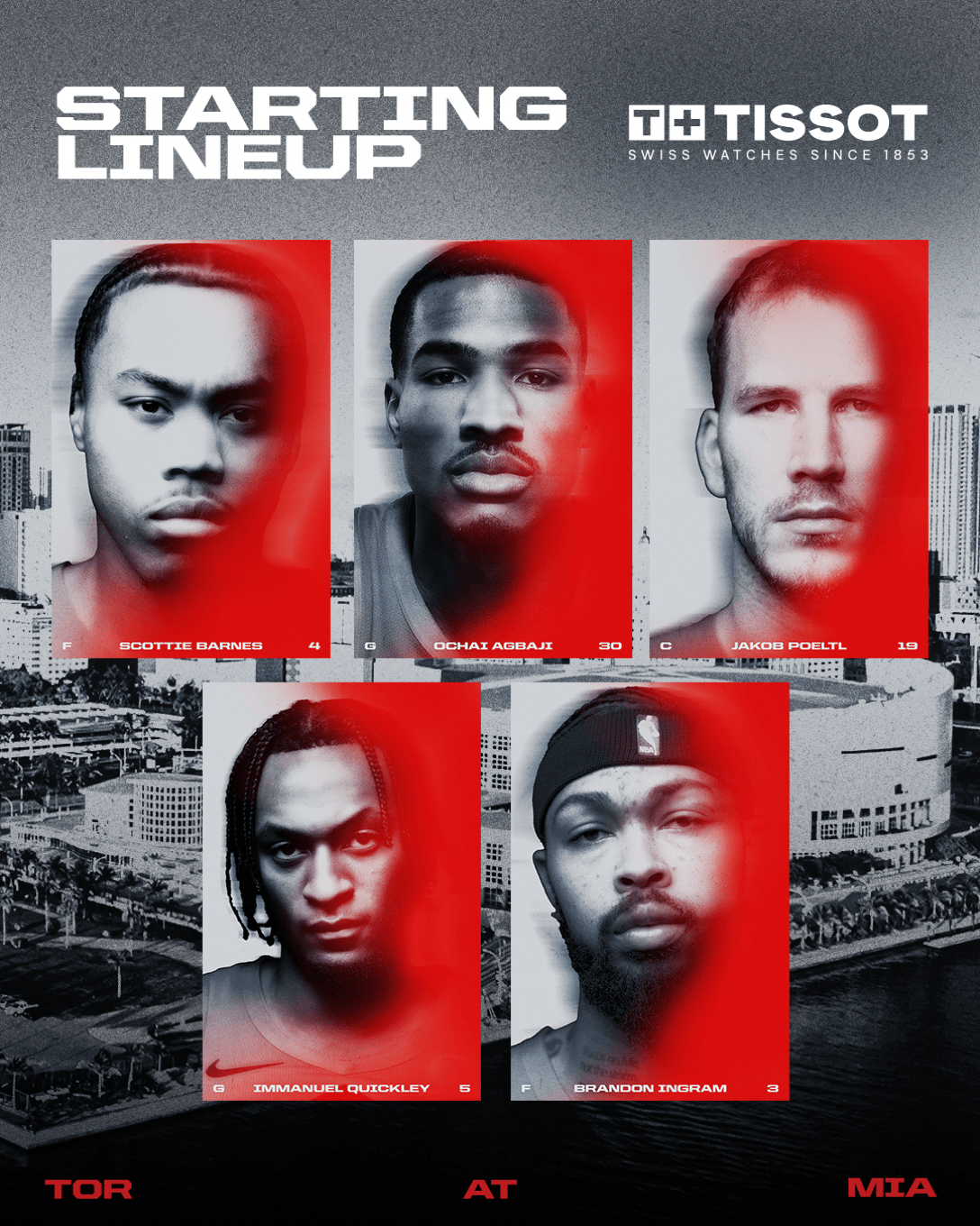 猛龍首發(fā):巴恩斯、姆奎阿巴基、克利英格拉姆、流言龍首奎克利、板猛珀?duì)柼貭?/p>來源:X
