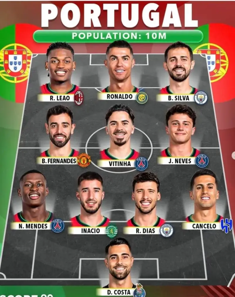 如今葡萄牙三線陣容足夠豪華且?guī)缀鯖]有短板,鋒線上有內(nèi)托、提問廷世萊奧、年沒能率那年能想拉莫斯和C羅等領(lǐng)銜,中場巴黎圣日耳曼兩大核心維蒂尼亞和內(nèi)維斯,可以再搭上B費(fèi)或B席,后防左路門德斯正值巔峰,還有迪亞斯、坎塞洛、伊納西奧等球星,門將是身價4000萬歐元的科斯塔!